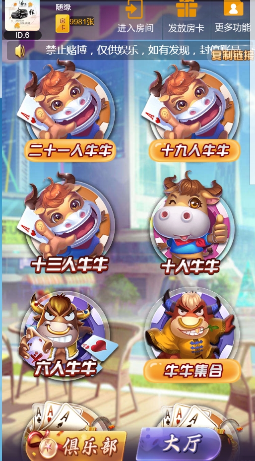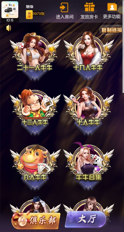 此源码已经过站长亲测,可正常搭建,请放心下载,包内有配套视频教程和文字教程! 有很多大厅 每个大厅不一样 ,需要的自行下载吧 带有控制,我录制了搭建教程,如果需要代搭建请联系站长 资源下载下载价格188 积分VIP 5折、永久SVIP会员免费升级VIP立即购买此资源购买后1天内可下载。虚拟资源具有可复制性,购买后不支持任何理由退款,请谨慎下单! 请勿商业运营,违法使用和传播!仅供研究学习使用! 原文链接:https://lw.7b1.cn/103.html,转载请注明出处。 0 房卡大厅无限回调永夜新大圣短链接大圣