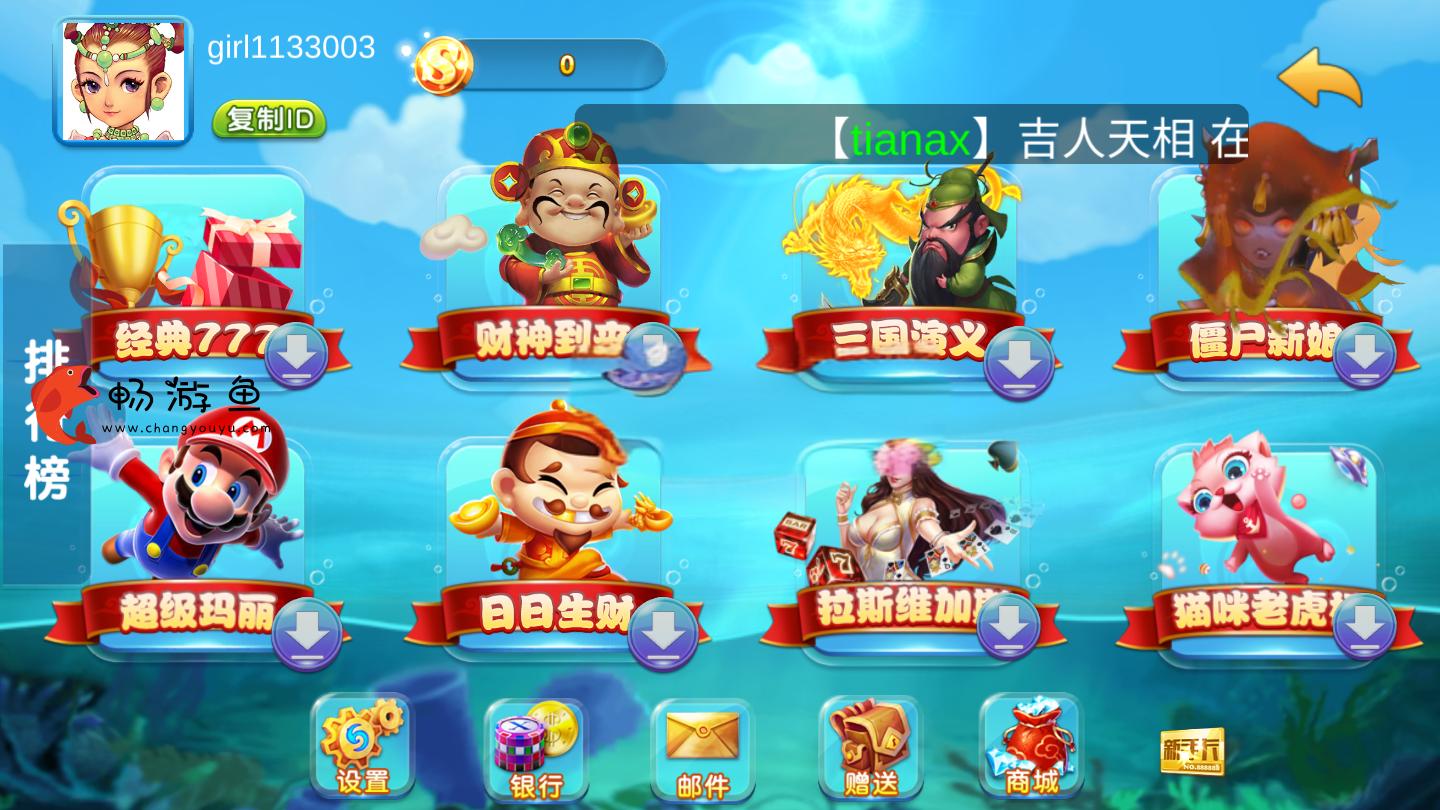 游戏内容:极速捕鱼,21点,百人牛牛,百家乐,经典777,财神来了,三国演义,僵尸新娘,9线拉王,海贼王,超级玛丽