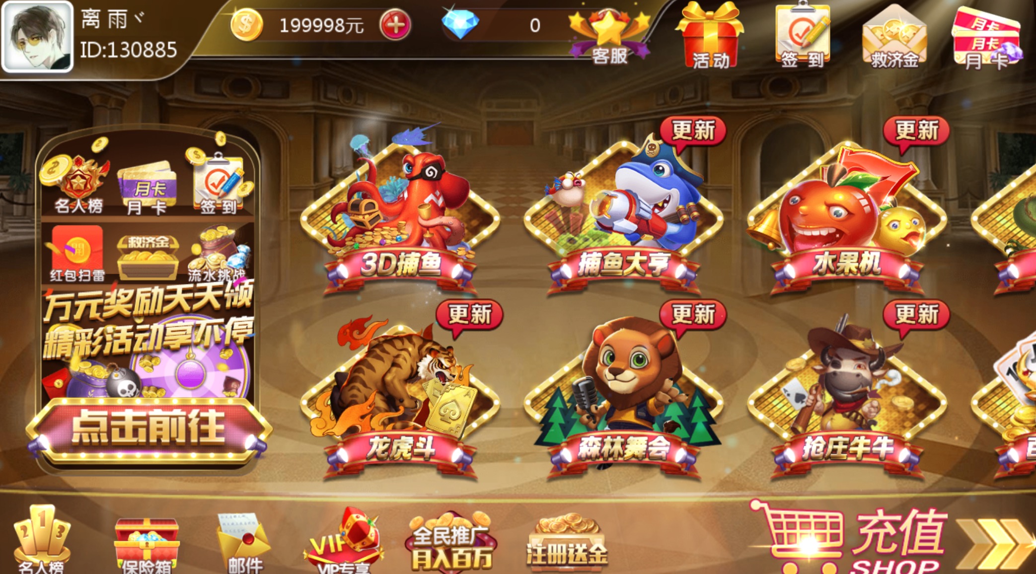 详情介绍 这款亮点在财神到这款子游戏,做的很不错!有老板要财神到的话,可以单独拉出去分支一个,搞一个单款游戏就一个财神到或者加个捕鱼… 资源下载下载价格100 积分VIP免费升级VIP立即购买此资源购买后1天内可下载。虚拟资源具有可复制性,购买后不支持任何理由退款,请谨慎下单! 请勿商业运营,违法使用和传播!仅供研究学习使用! 原文链接:https://lw.7b1.cn/1599.html,转载请注明出处。 0
