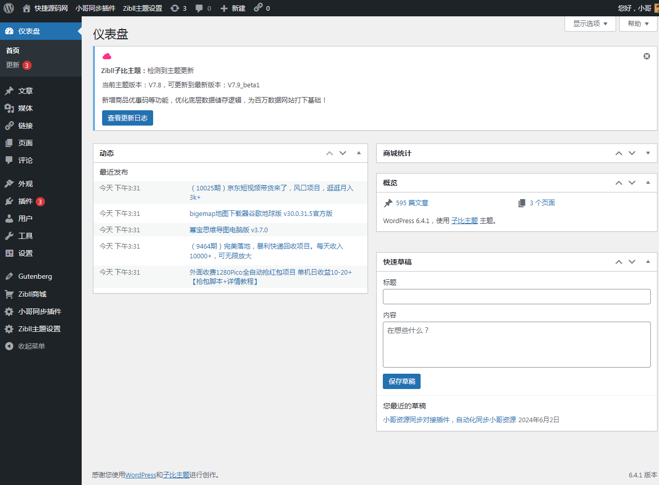 子比主题7.8绕授权版本的,拿回去不用复杂的设置,直接接可以用,带美化效果,带资源自动采集功能,简单设置直接躺赚。