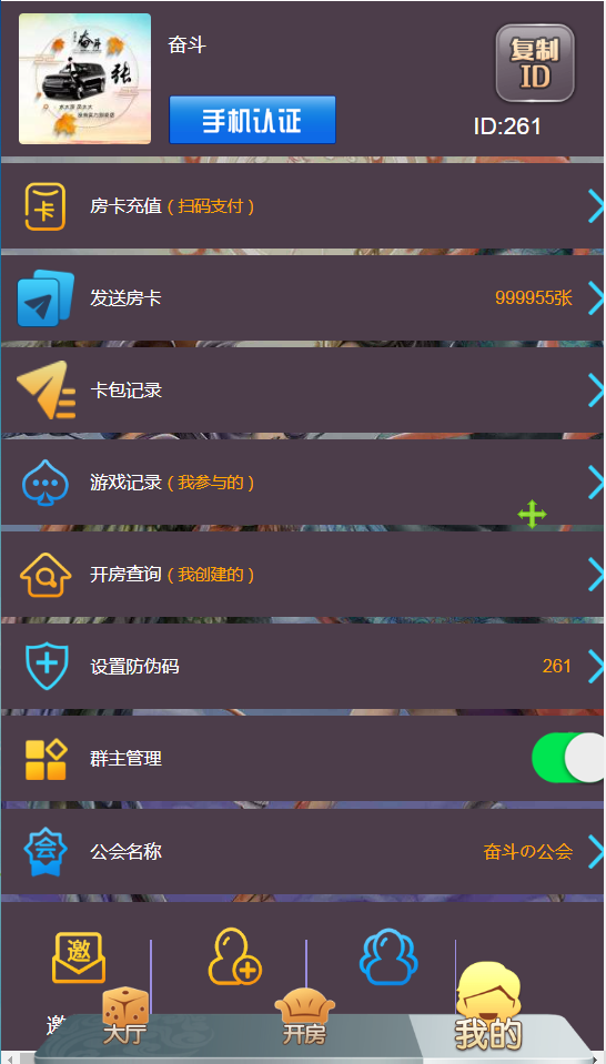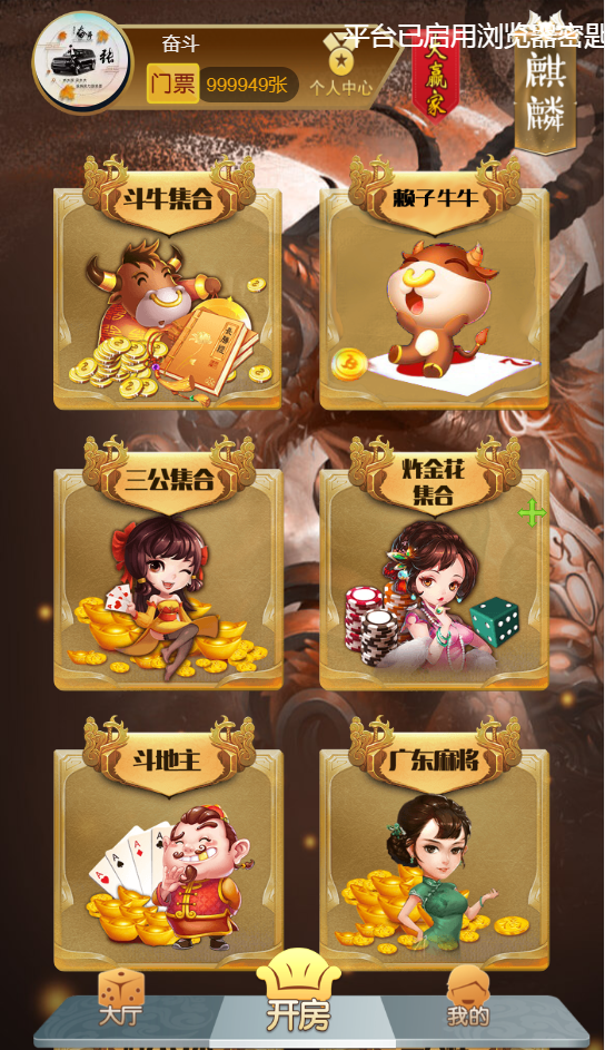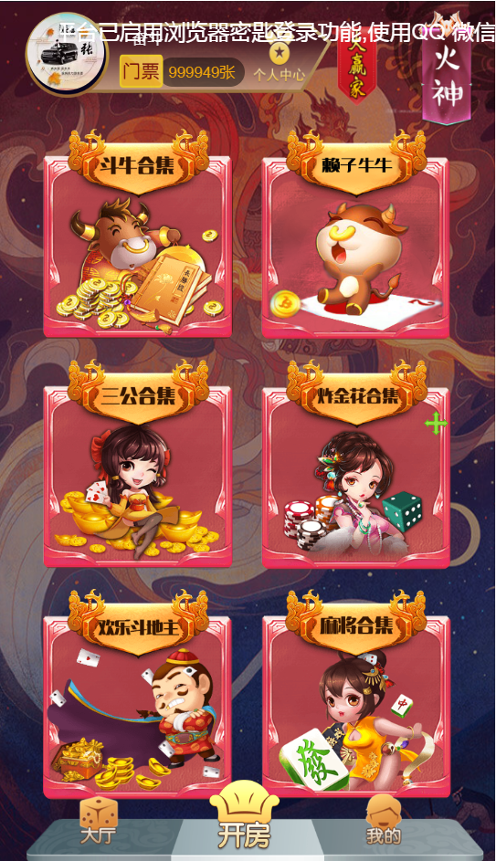 可以手机微信登录,也可以用秘钥在浏览器登录,带房卡充值功能