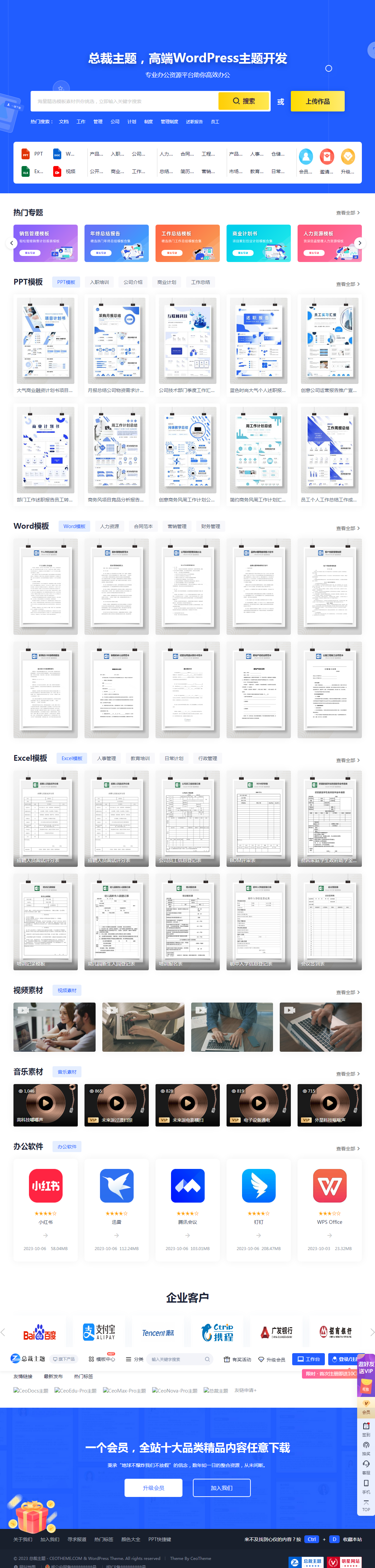 CeoDocs主题是一款轻量级、且简洁大气、付费素材下载类型主题,定位于办公素材行业,当然也适用于各类素材网站,同时也适用于网页素材网页特效下载网站等。
