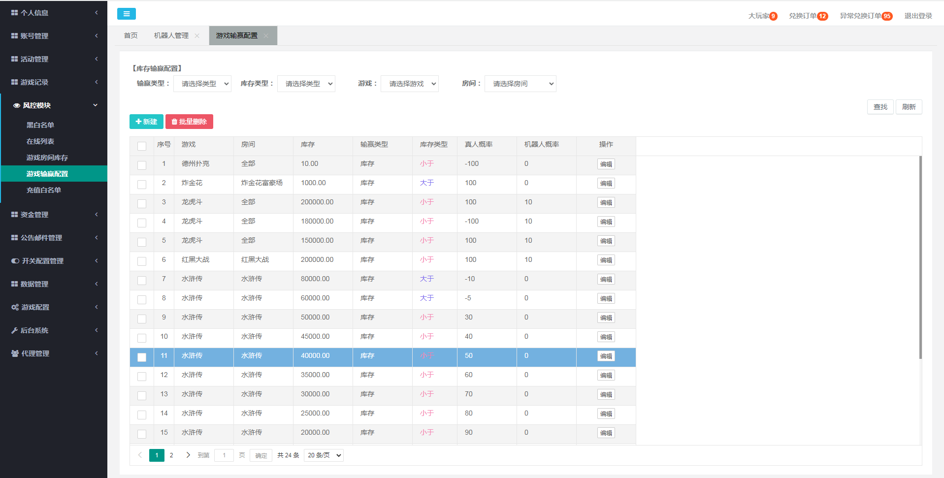 游戏超多功能强大:后台带库存控制和精准控制,前端功能按钮可以随意设置是否显示,进入房间可以设置最低多少分进入 房间底分可以自由设置