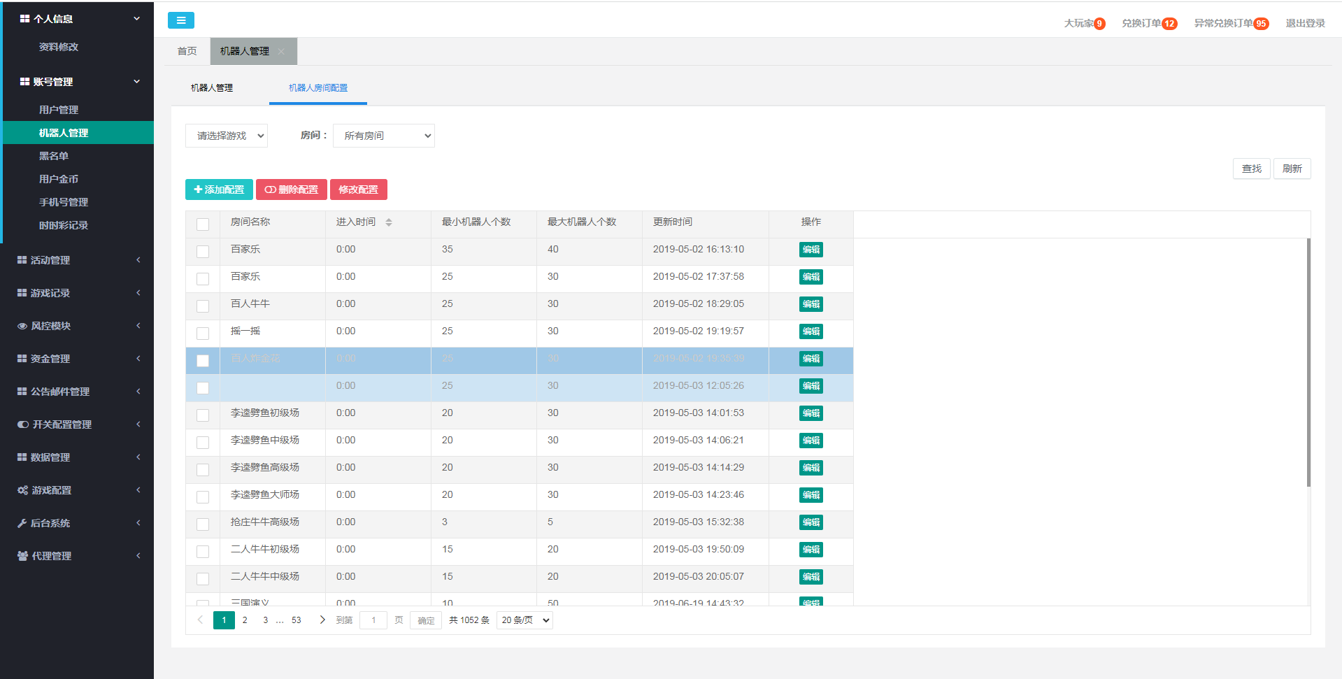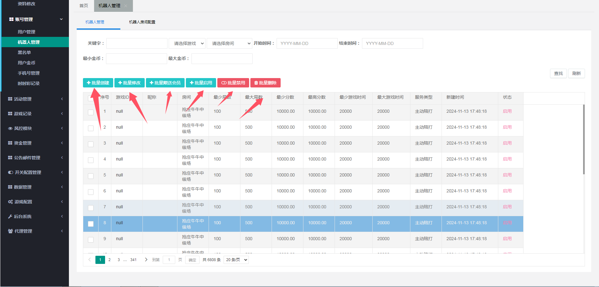 可以批量添加机器人进入指定房间和设置机器人陪玩局数和时长,能够设置机器人 相互模拟 主动陪玩 被动陪玩 等,可以设置游戏名字 可以自由开关增删游戏房间等